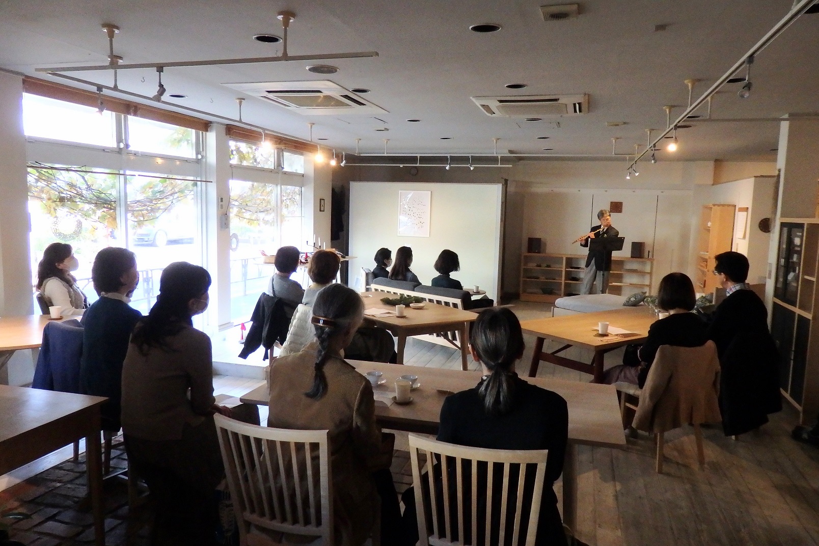 北海道東川町の木のぬくもりを感じる家具に囲まれてゆったりと聴いて頂きました。